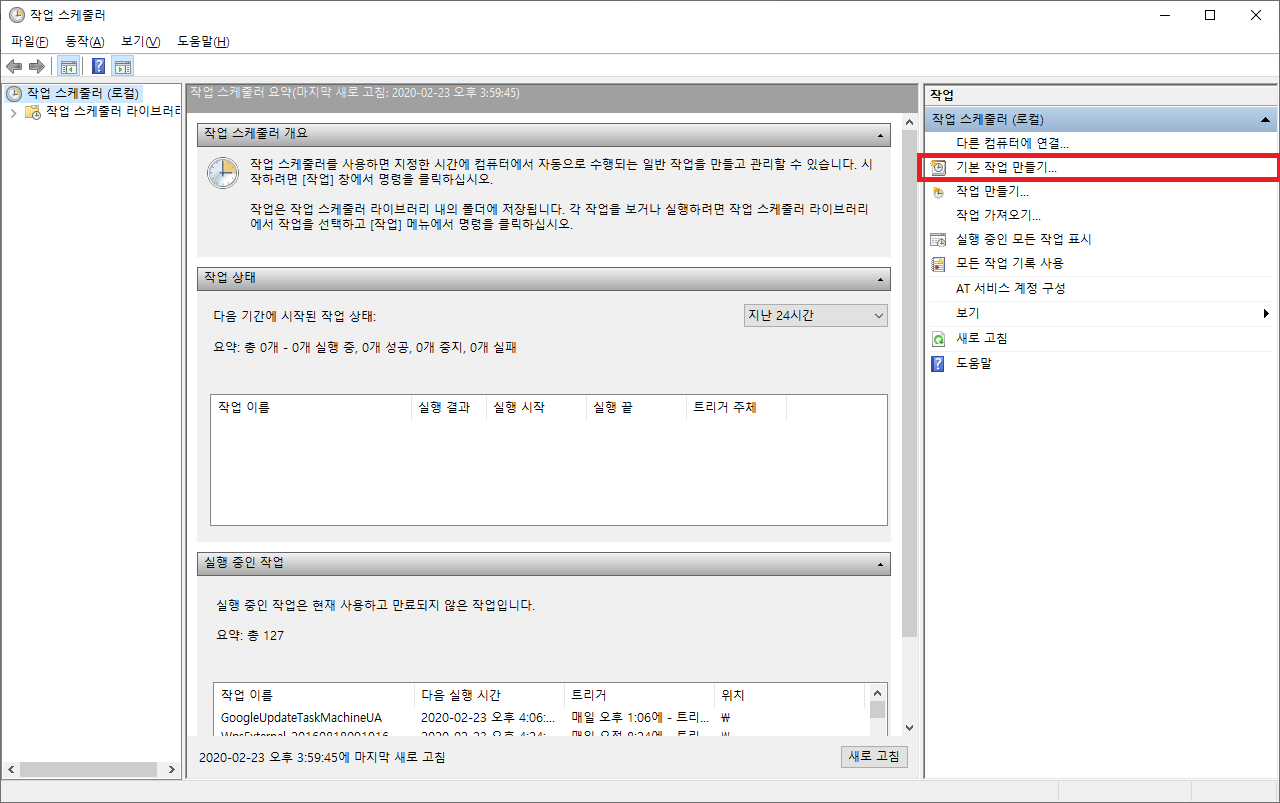 1. 작업 스케줄러에서 기본 작업만들기 클릭