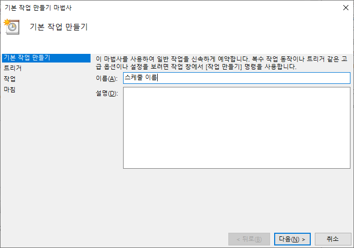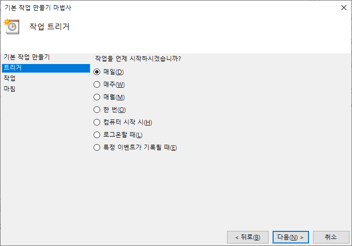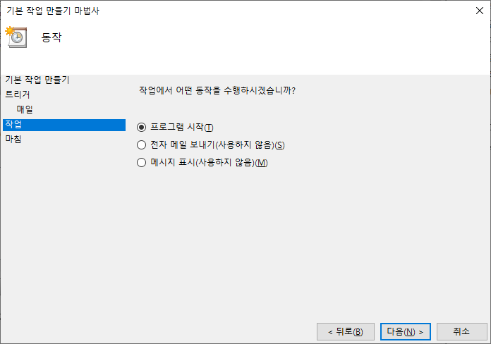 이제 실행 프로그램을 만들었으니 윈도우의 작업스케줄러를 등록하자.