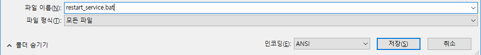 윈도우 서비스에 등록된 재시작 기능 스크립트는 아래와 같다.