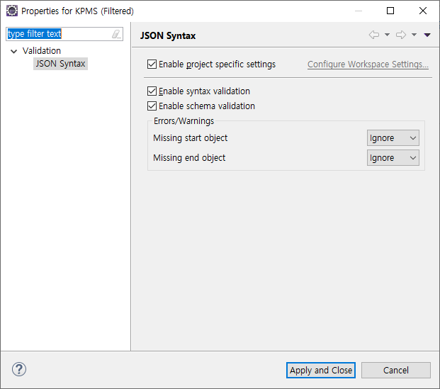 이클립스에서 json파일의 정합성 체크 과정에서 발생하는 문제