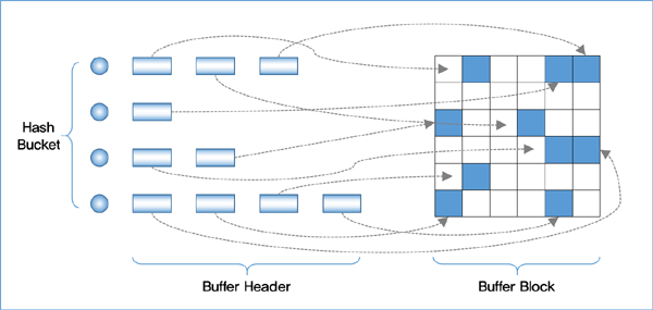 버퍼 캐시는 데이터 블록을 내포하고 있으며, 해시 테이블 구조로 관리된다.