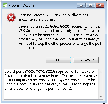이클립스에 톰캣, 제우스 등 서버를 올려서 사용하다 이클립스가 비정상적으로 종료되는 경우 아래와 같은 상황이 발생한다.